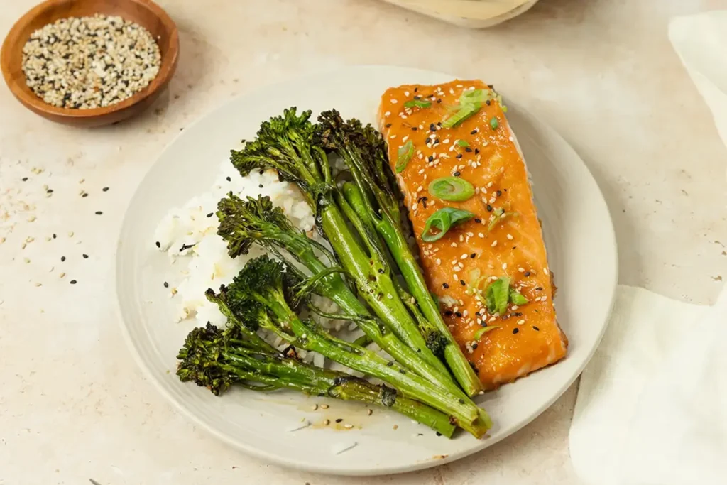 Salmon, miso glaze, Bimi®, hot oven. Dinner that looks planned even if it wasn’t.
